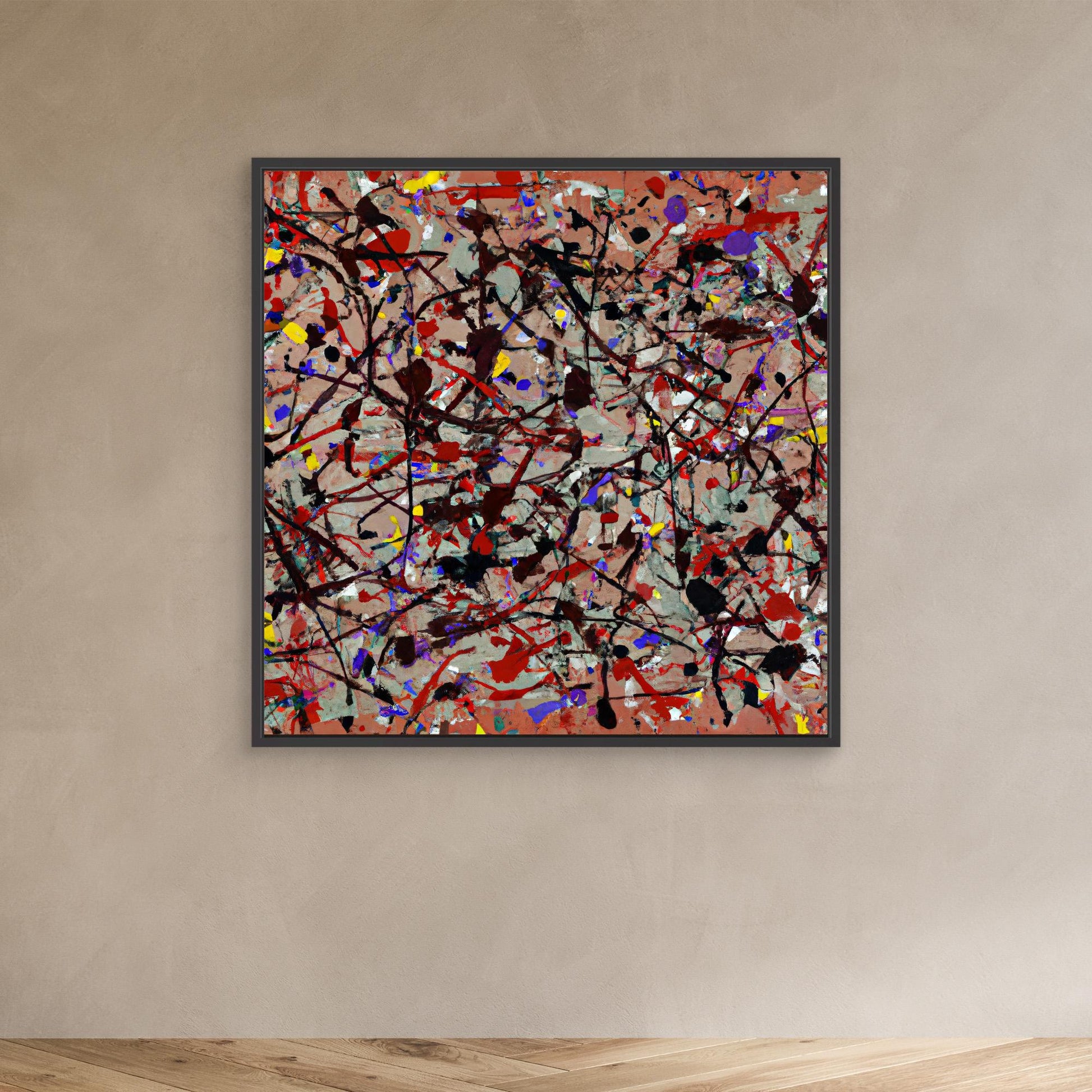This art print is pure movement captured in paint. Splashes of red, yellow, and purple collide across the surface, weaving energy into chaos and chaos into beauty. Inspired by Pollock’s drip technique, it celebrates freedom — where gesture becomes language and accident becomes design.