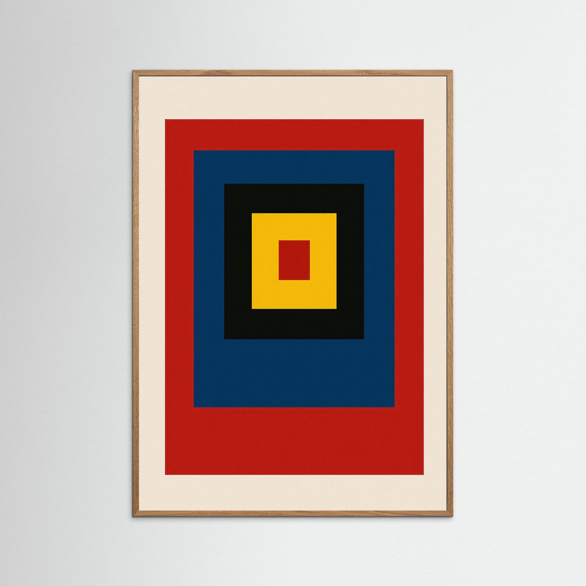 A meditation on proportion and hue, Primary Focus stacks crisp, nested squares to pull the eye inward. The disciplined geometry and primary palette nod to mid-century color theory while feeling unmistakably contemporary. Clean edges and even fields of pigment create a striking focal point that pairs beautifully with modern, minimalist, and mid-century interiors. Printed with archival inks on heavyweight, acid-free and museum-grade paper, this giclée preserves saturated color and razor-sharp lines for years. Available in multiple sizes and easy to frame.