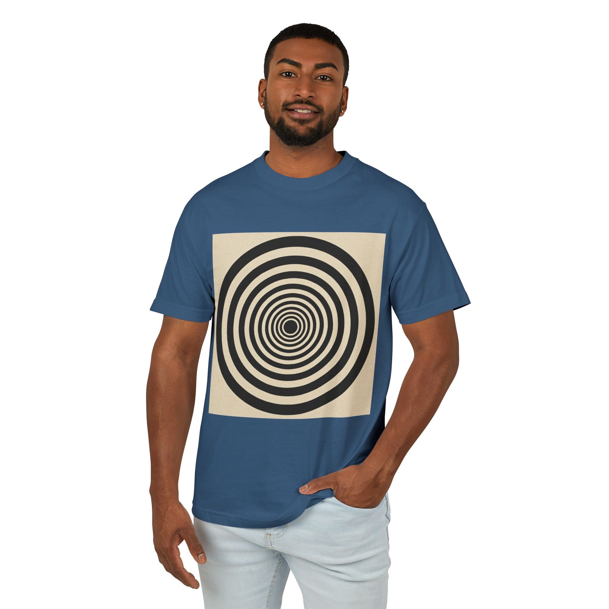 Urban streetwear T-Shirt featuring an abstract art-inspired Op Art design. Perfect for those looking to add a unique and edgy touch to their wardrobe. Ideal for individuals who appreciate art and fashion, suitable for casual wear or special occasions.