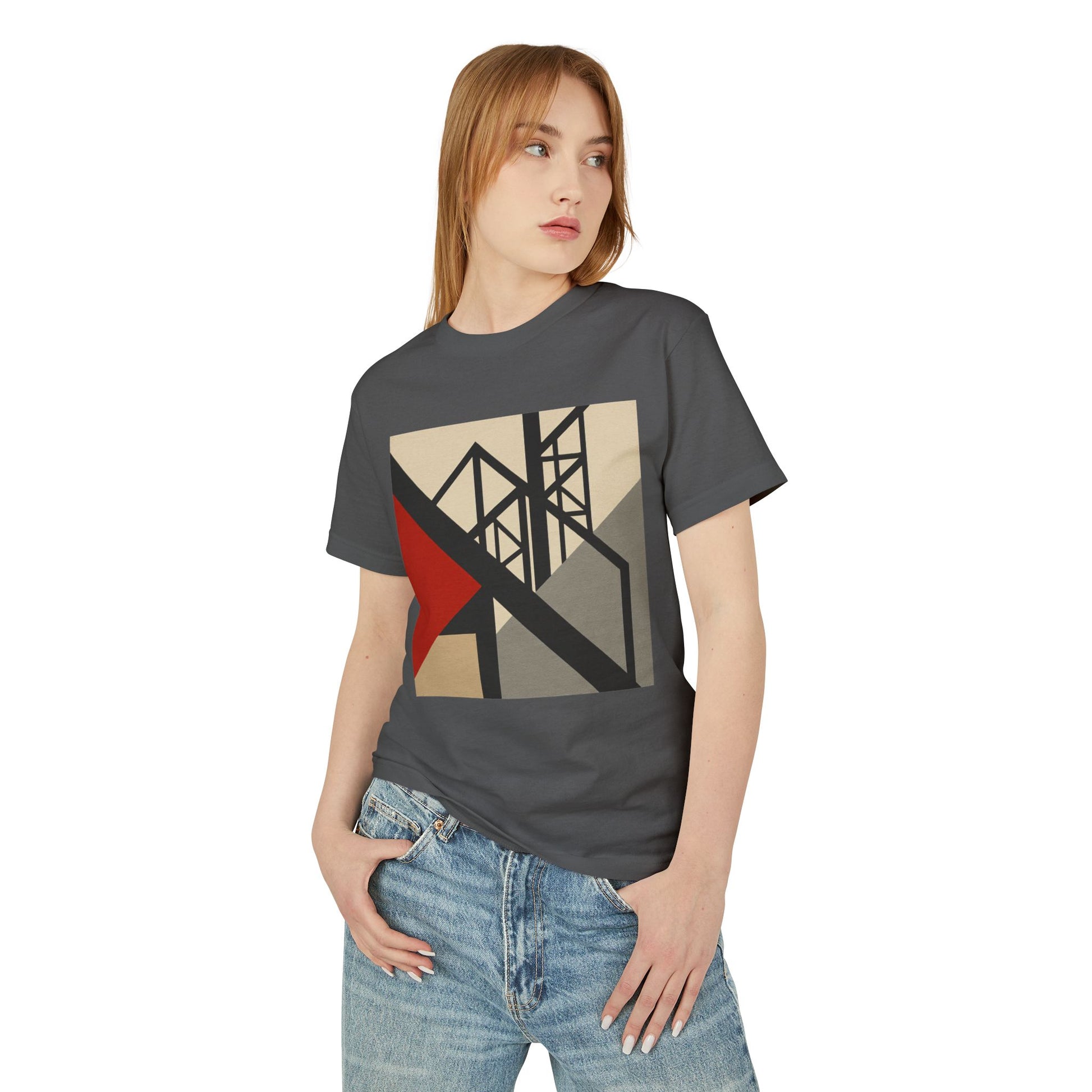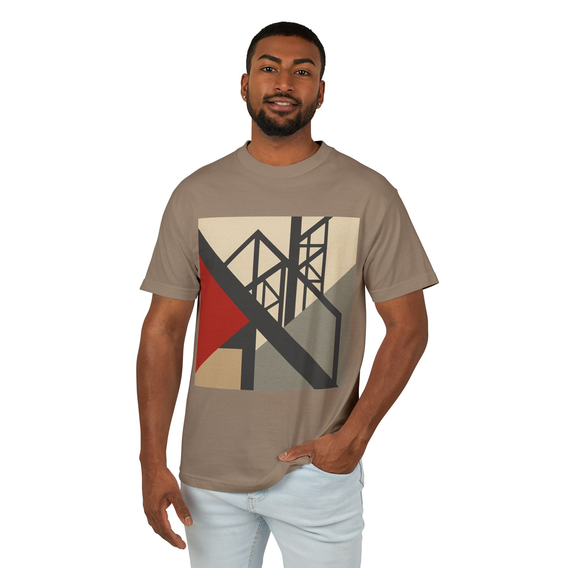 Urban streetwear T-Shirt featuring an abstract art-inspired hard edge design with architectural echoes. Perfect for those looking to add a unique and edgy touch to their wardrobe. Ideal for individuals who appreciate art and fashion, suitable for casual wear or special occasions.