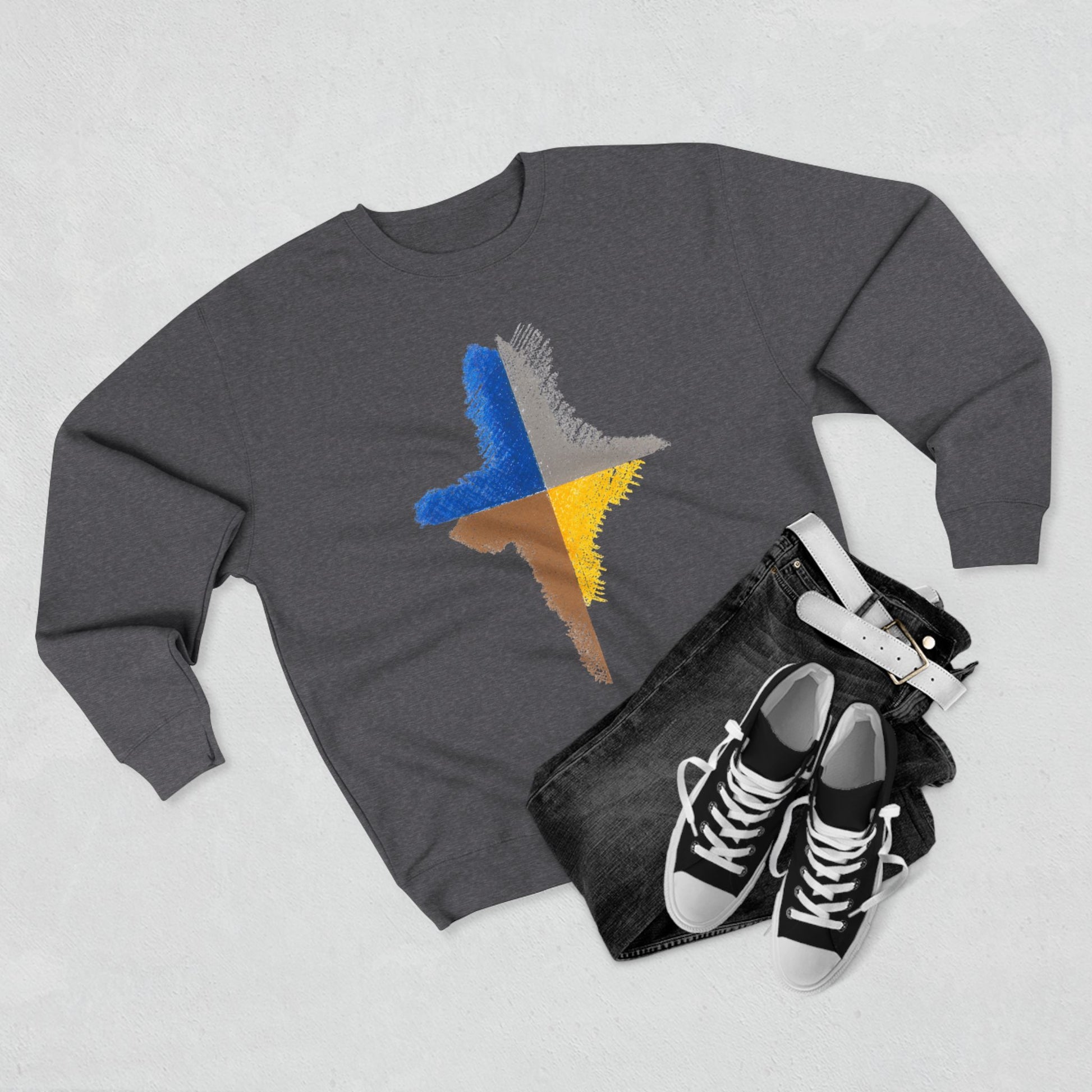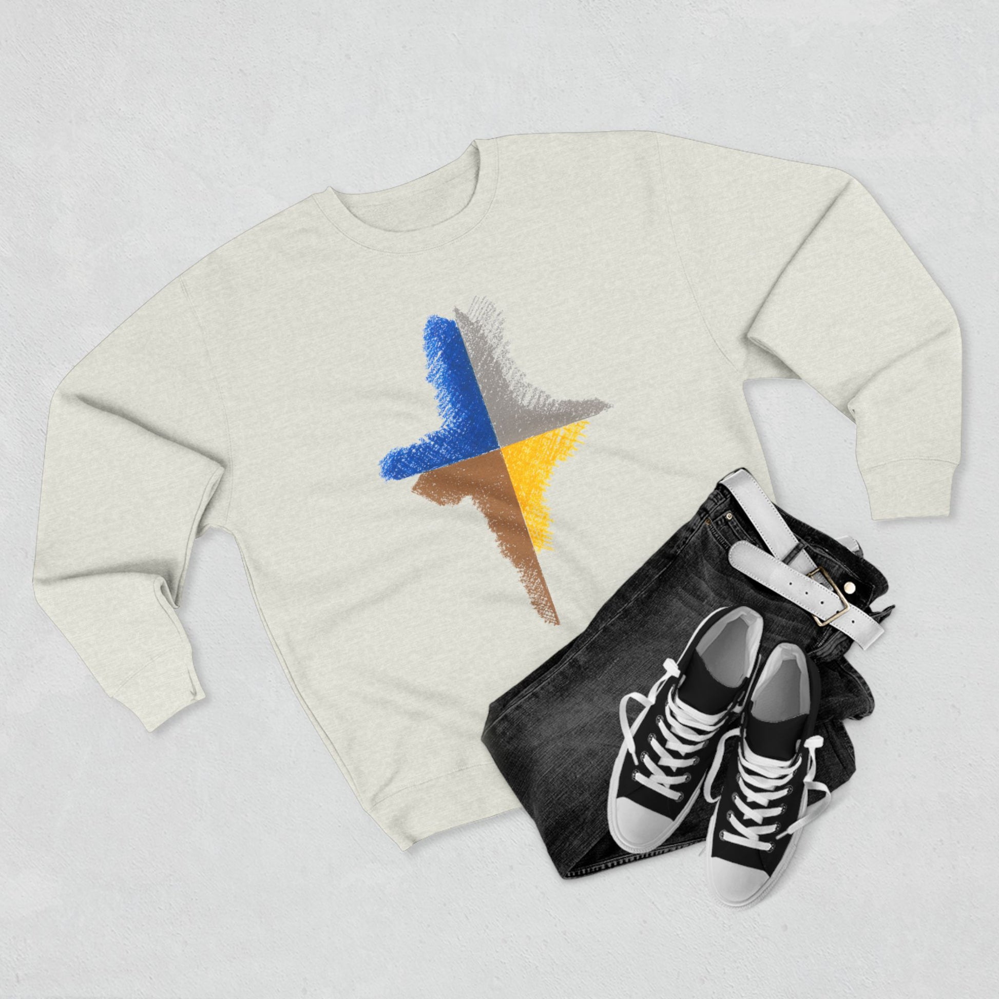 Stay cozy and stylish with this unisex crewneck sweatshirt, perfect for chilly days and relaxed evenings. Designed with a modern aesthetic, this sweatshirt features a unique art inspired Design that adds a touch of contemporary flair to your wardrobe. Its medium-heavy fabric offers warmth and comfort, making it an ideal layer for any casual outing or cozy night in. Whether you're going for a coffee run or lounging at home, this sweatshirt is versatile enough to fit seamlessly into your everyday life. It's a great gift for friends and family who appreciate modern design and comfort, making it perfect for holidays like Christmas, birthdays, or just because!